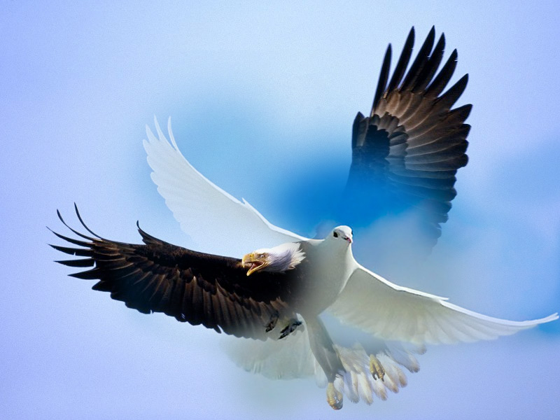 (LIBRA 26) AN EAGLE AND A LARGE WHITE DOVE CHANGE INTO EACH OTHER